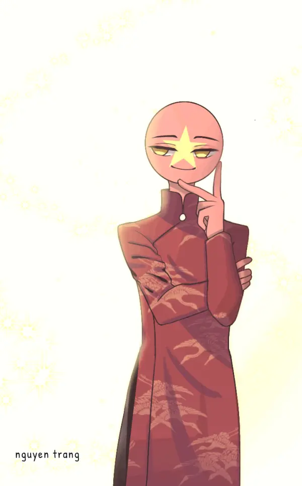 "Đây là trang phục truyền thống của đất nước tôi, ngài không phiền phải không?" Việt Nam híp mắt cười, nhẹ nhàng ngồi vào vị trí đối diện U.K, hai tay đặt lên bàn, nói tiếp.